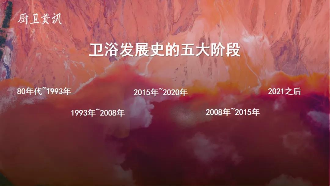 做2022年衛浴發展趨勢分析前,回顧和梳理衛浴發展史是非常有必要的。我國衛浴的發展史大體可以分為五個階段,第一個階段是80年代到1993年,第二個階段是1993年~2008年,第三個階段是2008年~2015年,第四個階段是2015年到2020年,第五個發展階段便是2021年往后的時期。