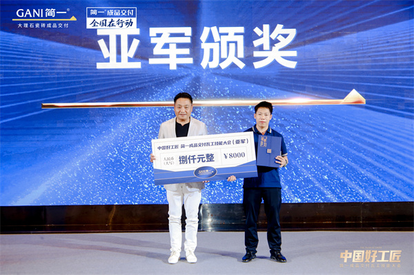 5月24日,由中國建筑裝飾協會、GANI簡一、工匠(北京)俱樂部聯合主辦,中國建筑衛生陶瓷協會、中國陶瓷工業協會瓷磚粘貼技術專業委員會、亞太酒店設計、美國《室內設計》、東方雨虹、沃能工具作為支持單位,“中國好工匠·簡一成品交付瓦工技能大會”在北京北辰五洲皇冠酒店隆重舉辦。東莞曾紀雄以精湛技藝登上「中國好工匠」冠軍寶座,西安何大亮、洛陽王宏強分別獲得亞軍和季軍,武漢彭斌、北京宮能飛分別獲得最佳人氣獎和用戶滿意獎。