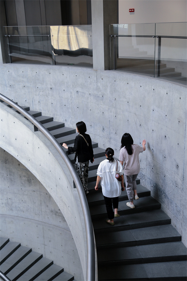 光、水、影、灰調(diào)質(zhì)感、雙螺旋樓梯……以最原始的材料堆砌的清水混凝土建筑,以“和諧”的概念設(shè)計,使之與嶺南文化呼應(yīng),這正是位于佛山順德由日本建筑大師安藤忠雄所設(shè)計的和美術(shù)館。