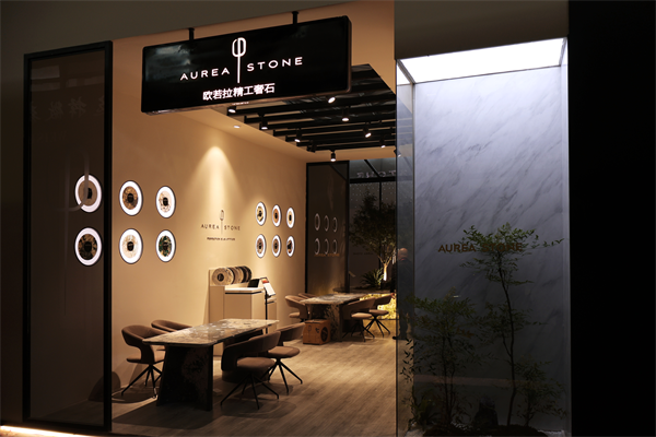 歐若拉立足于人們對美好生活得追求,通過奢石的色彩魅力,將品質與時尚碰撞的火花帶入生活,為用戶帶來更多兼具實用性與藝術美感的奢石精品,為空間的美觀度和藝術氣質提供了更多可能,此次展會也為參展商帶來綠色環保的美好人居新感受。