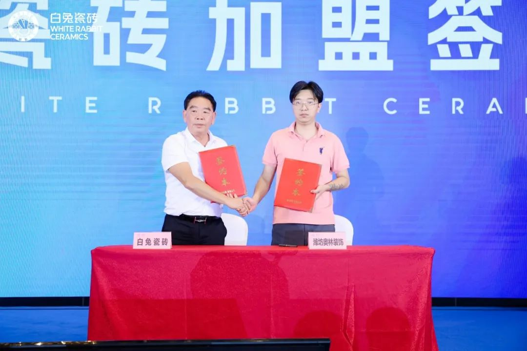 一次次真誠的握手,一份份合作協議的簽訂,為白兔瓷磚又增添了新的力量。會上,在全場來賓的共同見證下,旭日集團董事長黃英明與優秀合作伙伴代表進行合作簽約,標志著雙方將攜手共進,合作互贏,共創未來!