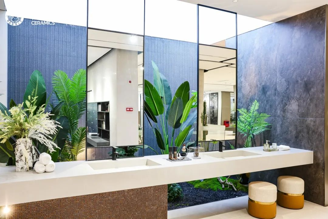 此次陶博會,白兔瓷磚佛山營銷中心展廳煥新升級,新展廳從布局、空間、產品、文化等方面多維創新,將三磚新品——精品墻地磚、藝術馬賽克、文化墅磚/外墻磚融入特定空間中,實現一個場景多種產品展示,構建沉浸式產品體驗。
