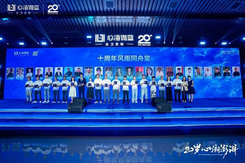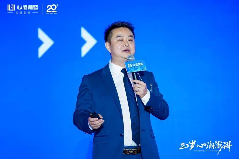 晚宴開始,張愛民董事長在閃耀燈光中登場,熱情洋溢地發表了20周年報告。張董真情流露地回顧了公司20年的發展歷程,從幾個人的從浴室柜單一品類的獨角獸到全衛定制戰略領航,從多品牌運作到贏伽電商、凱庭淋浴房,雅頌衛浴等七大分公司/中心集團發展,從專賣區到全國百城千家門店、至商業版圖覆蓋海外,心海伽藍始終敢為創新、銳意進取,從率先扛起數智化生產大旗開始,心海伽藍始終堅持開放分享的態度,與行業共同成長。