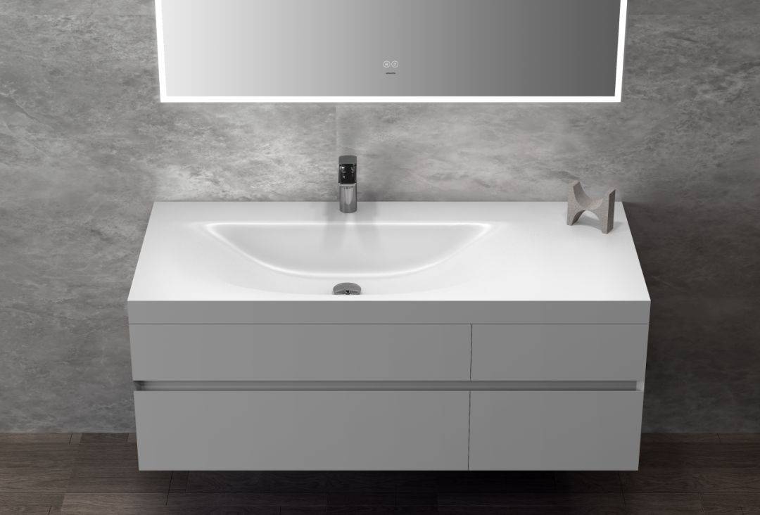 木里浴室柜臺(tái)面采用不同以往的啞光質(zhì)地,做到保留亞克力材質(zhì)優(yōu)勢(shì)的同時(shí),升級(jí)了觸感體驗(yàn),達(dá)到1+1>2的效果;其次,臺(tái)盆采用亞克力無縫一體工藝,流暢不藏垢,進(jìn)一步改善日常清潔體驗(yàn)。