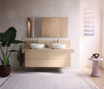 該系列的設(shè)計核心與靈魂色調(diào)——啞光陶土色,以傳統(tǒng)工藝為靈感,賦予陶瓷產(chǎn)品質(zhì)樸自然而溫暖優(yōu)雅的質(zhì)感,使其更具有手工般的真實(shí)觸感。Urquiola表示:“我們的目標(biāo)是利用陶土這種材料,創(chuàng)造出一種讓衛(wèi)浴用品更有層次的畫布。這是有意偏離純白或純黑極簡美學(xué)的嘗試?!边@也構(gòu)成了浴室家具的配色基礎(chǔ),大地色系的陶土色調(diào)以及以自然為靈感的色彩搭配,其中融入了白色、土棕色和啞光炭黑色的微妙變化,預(yù)示著浴室色彩運(yùn)用的全新開放性。